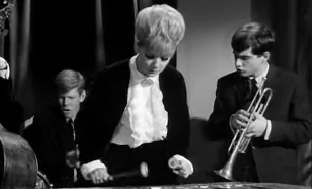The Arthur Rogers Modern Jazz Quintet have certainly got a way with ‘a happening tune’. The line-up was trumpet, piano, string bass, bass and vibraphone, the latter played by blonde-beehived Sarah James (Annika Willis). What Sarah doesn’t know is that in the special arrangements sent over from America, her solos have been written in musical code; they contain secret information that’s being passed to the enemy. It’s an ingenious cover for a spying mission. After all, as Major Nelson of MI5 points out: ‘These jazz wallahs, they get about a bit, you know.’