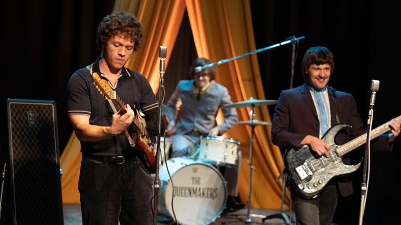 The line-up never changed: vocalist Nick Wilding (Will Payne), with his brother Ken (Michael Fox) on guitar, Chris Clark (Jonathan Barnwell) on bass, and drummer Lee ‘Stix’ Noble (Dario Coates). But musical differences emerged, one faction wanting to push onward into psychedelia and pretension, another wanting to get back to their rockin’ roots. So which should it be: Baudelaire or Bo Diddley?