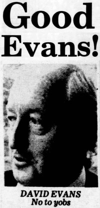 Either way, Evans was in position when a vacancy arose at Welwyn Hatfield, and while he was to rise no higher on the ministerial ladder than PPS at various departments, he achieved a prominence that was far from junior.