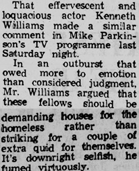 It was only to be expected that, in such a strike-heavy, union-dominated decade, Williams’ comments would cause a stir. Almost as soon as transmission had ended, the BBC switchboard lit up like a Christmas tree. On fire. (Which didn’t stop it getting its usual repeat the following Friday afternoon.)