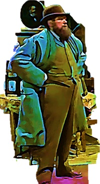 Now here’s a queer thing: Cribb walks past a poster advertising Graham Moffat’s play Susie Tangles the Strings, which wasn’t staged until 1924. Yet Cribb and Thackeray don’t look a day older than they did in the 1870s and 80s.